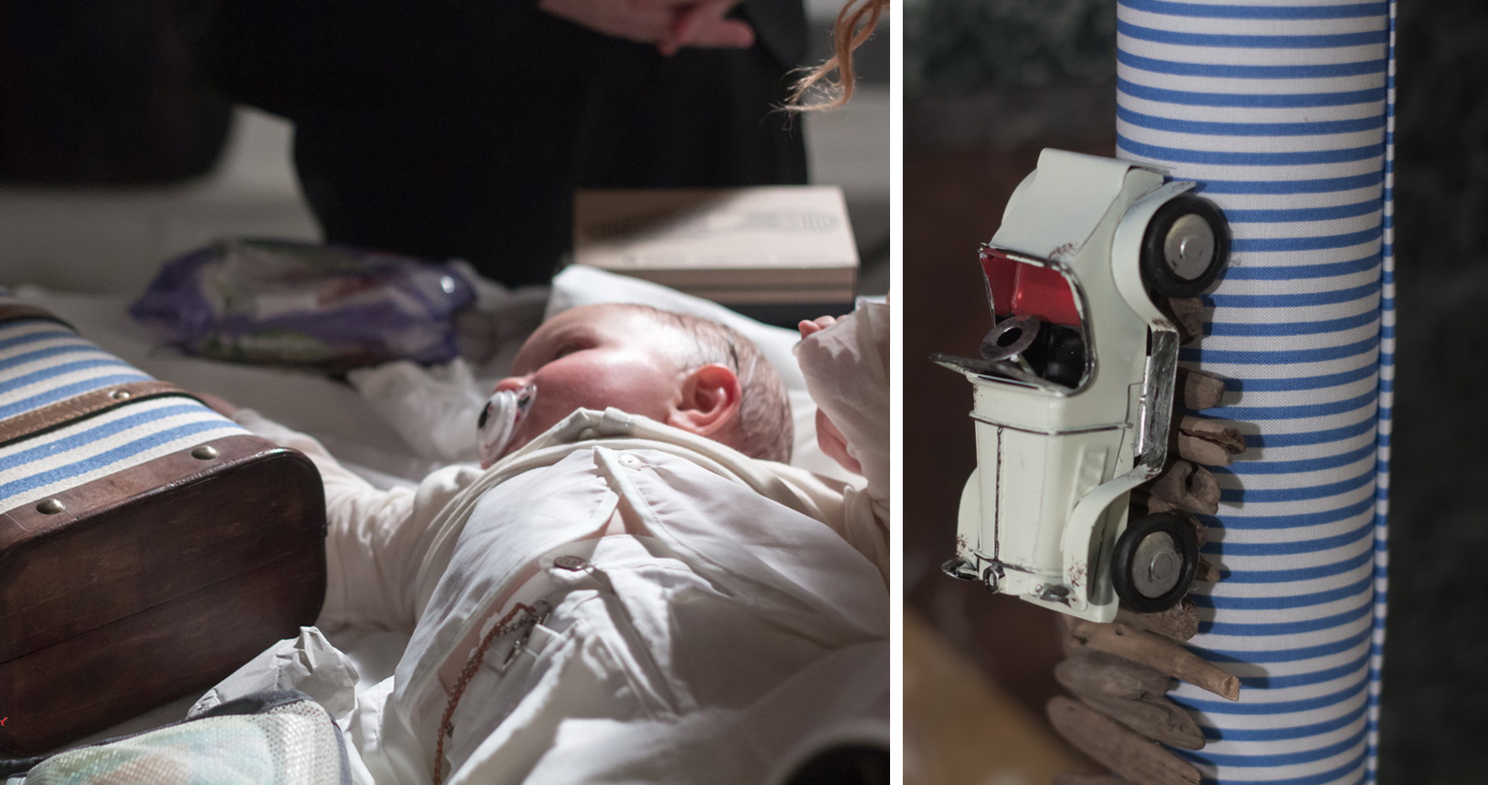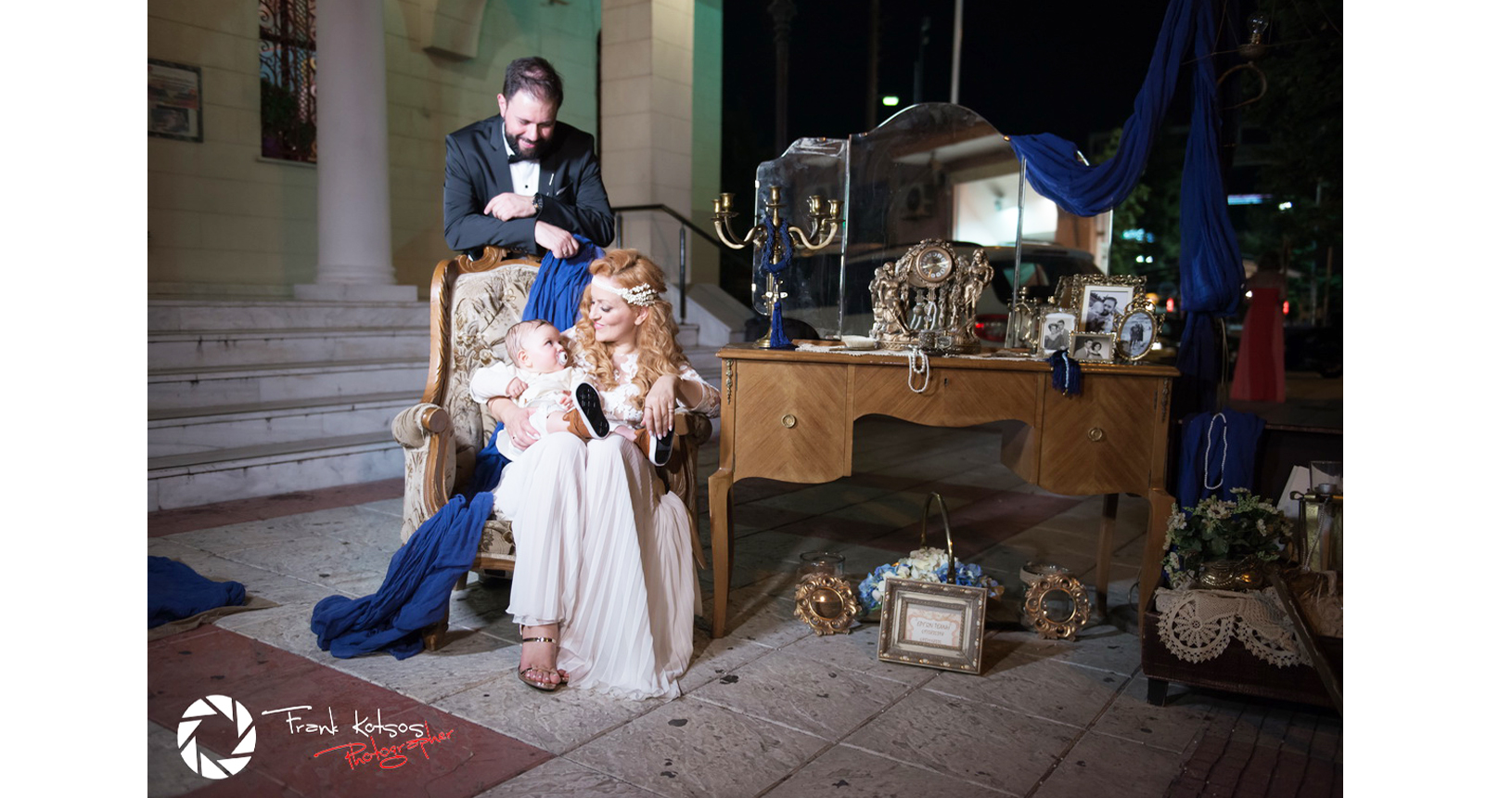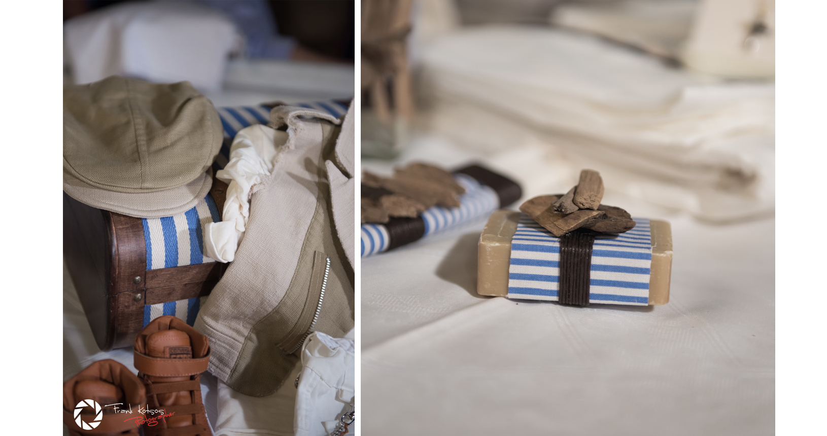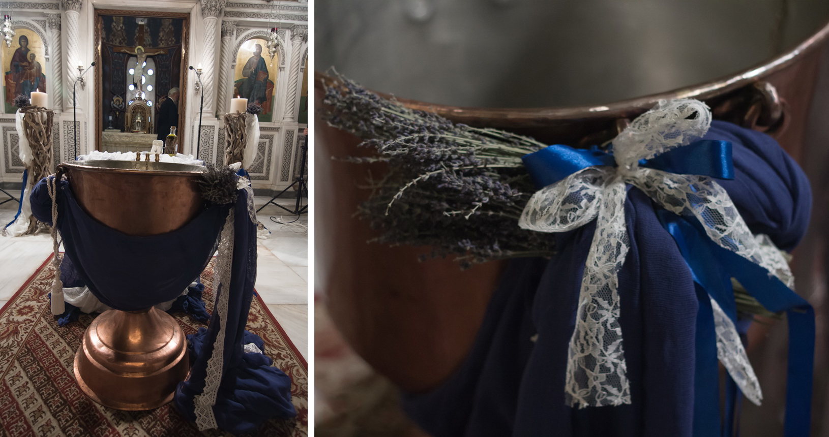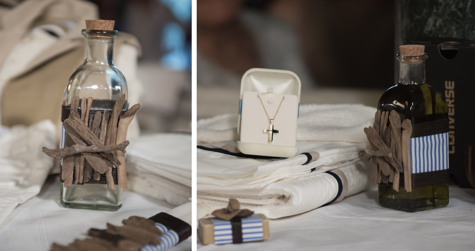Τα ξύλινα μπαούλα της Flοral trade center για το βαπτιστικό σετ και τα υπόλοιπα διακοσμητικά στοιχεία (λαμπάδες, κεριά, λαδοσέτ) σε marine-blue αποχρώσεις, δημιούργησαν το τέλειο σκηνικό που μας ταξίδεψαν στη θάλασσα του Αιγαίου…